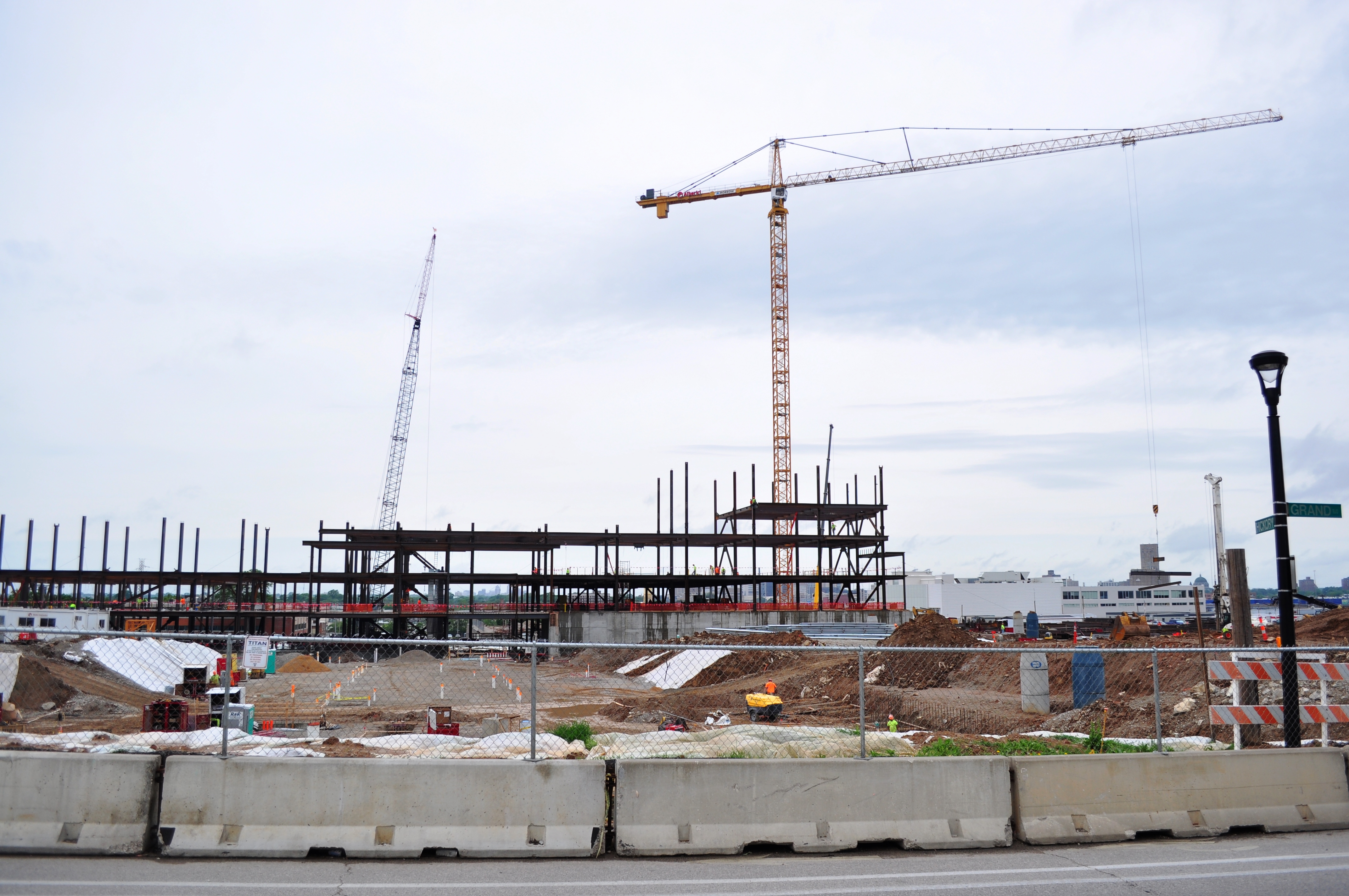 The intersection of Chouteau and Grand has long been an empty entrance into St. Louis University’s south campus and SSM Health Saint Louis University Hospital. However, if you drive by now, it’s bustling with activity as construction workers go vertical with a new Saint Louis University Hospital and new outpatient care center. Sitting just a quarter mile south of Metro’s Grand Transit Center, this new investment will bring more hospital workers, patients, and visitors near public transit.
