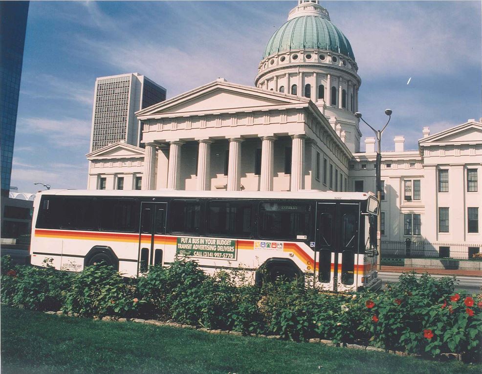 4th Street in front of the Old Courthouse. Judging from the bus coloring and Busch II in the background, I would guess 1995.