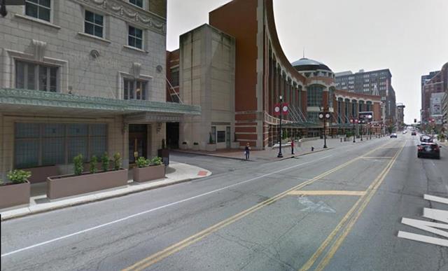 The ‘motel’ is actually the Lennox (built in 1929) at 823 Washington Ave. after owners re-branded as the Ben Franklin Motor Hotel with the addition of a parking garage in 1965. As you can see the mirrored photo below, the hotel still stands with the convention center down the block.